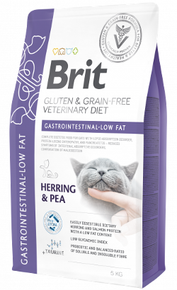 Ração Veterinária para Gatos Brit Veterinary Diet Cat Gastrointestinal Low Fat Gluten & Grain-Free | Herring & Pea | 5 kg