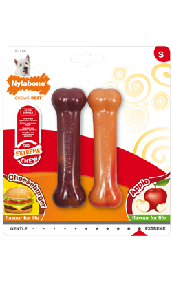 Brinquedo para cão Nylabone Dog Extreme Chew Cheeseburguer & Apple Twin Pack | Small